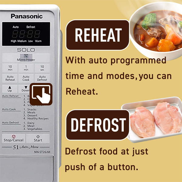 Re-Heat & Defrost: Auto programmed reheat and defrost modes ensure even heating or defrosting of food without compromising on the textures of flavour.