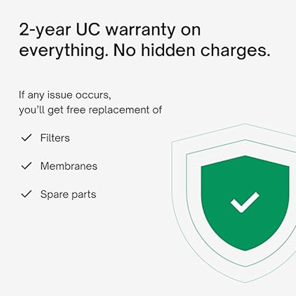 2 year unconditional warranty: All filters, membranes & electrical parts changes covered at zero service cost. Avail warranty in one-click from the Urban Company app